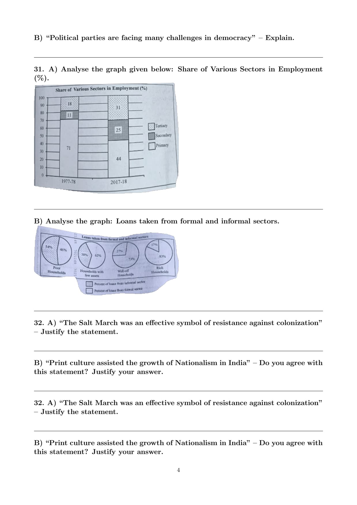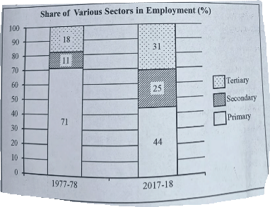 (A) Analyse the graph given below: Share of Various Sectors in Employment (%).