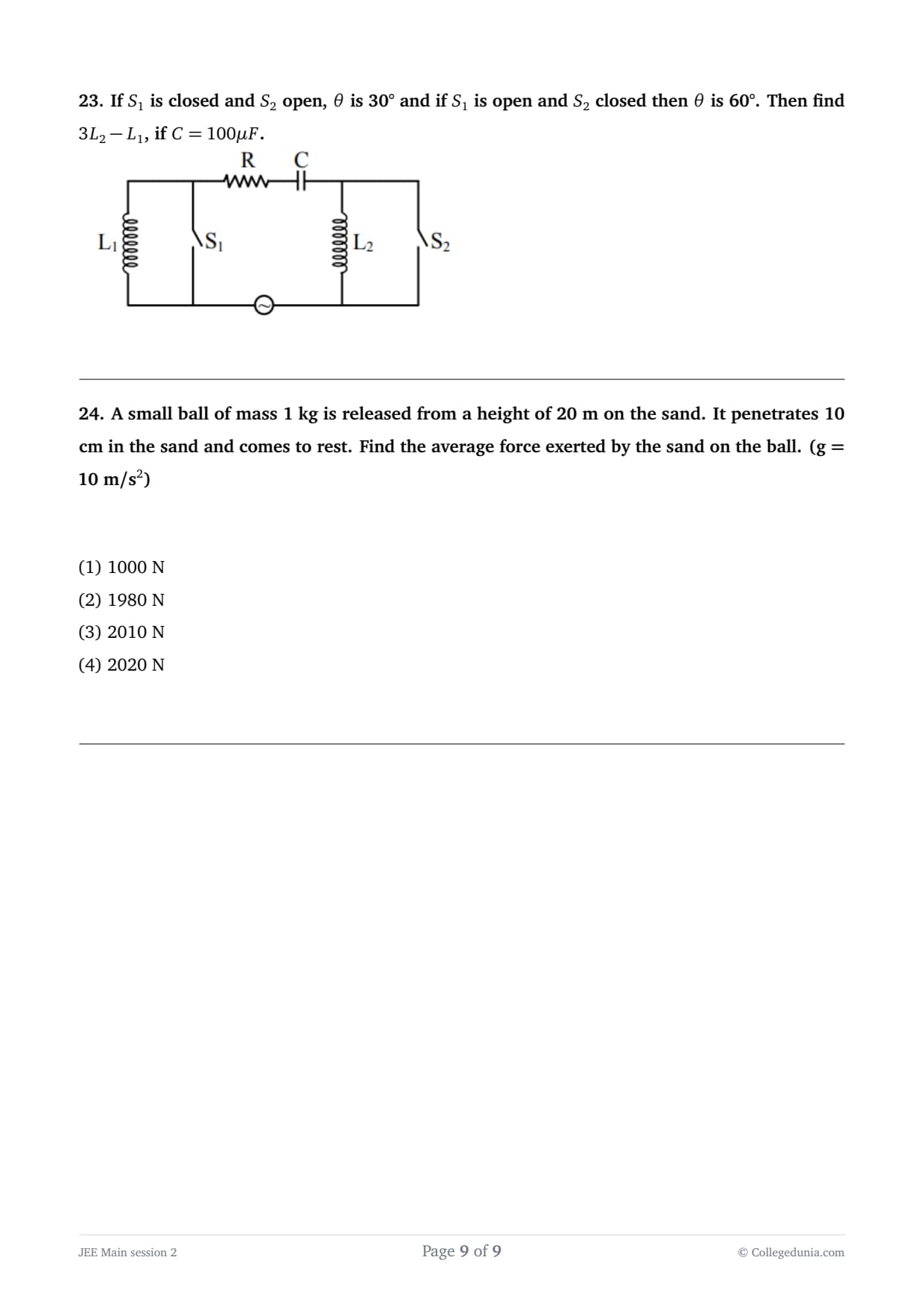 JEE Main 2026 April 2 Shift 2 Physics Question Paper with Solution PDF