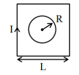 In this question, we are asked to find the mutual inductance of a system involving a square of side length \( L \) and a loop with radius \( R \). The given condition \( R \ll L \) implies that the radius of the loop is much smaller than the side of the square.