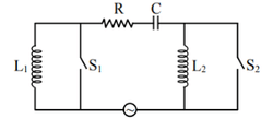 From the problem, it can be inferred that this is a resonance circuit with inductors \( L_1 \), \( L_2 \), and a capacitor \( C \), and switches \( S_1 \) and \( S_2 \).