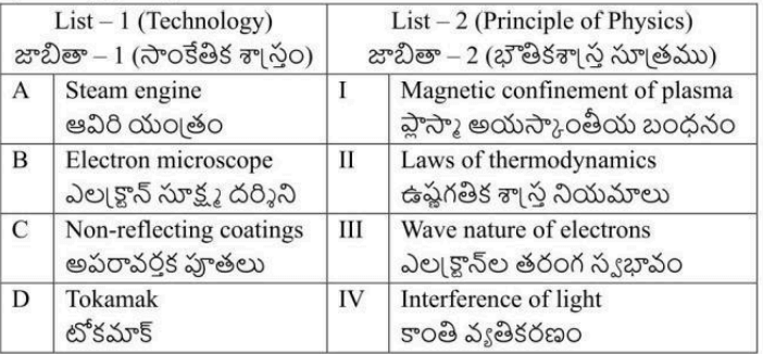 Match the "Technology" given in List-1 with the "Principle of Physics" given in List-2.