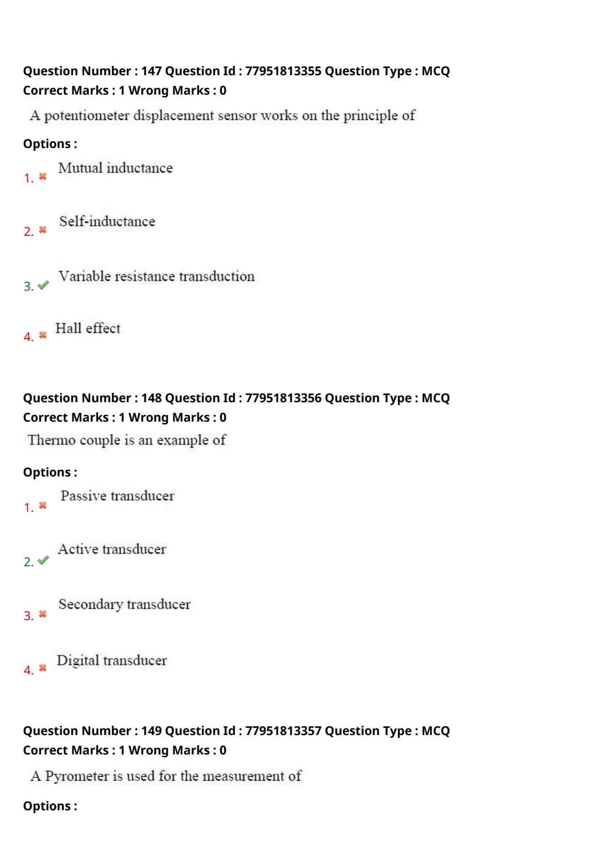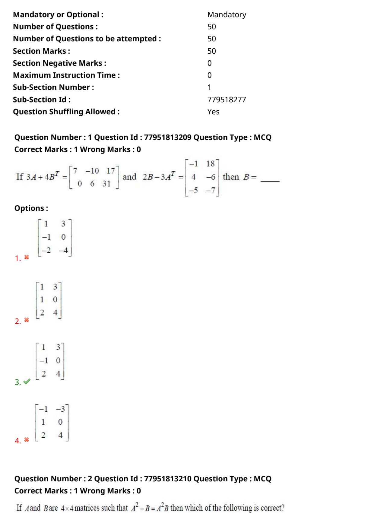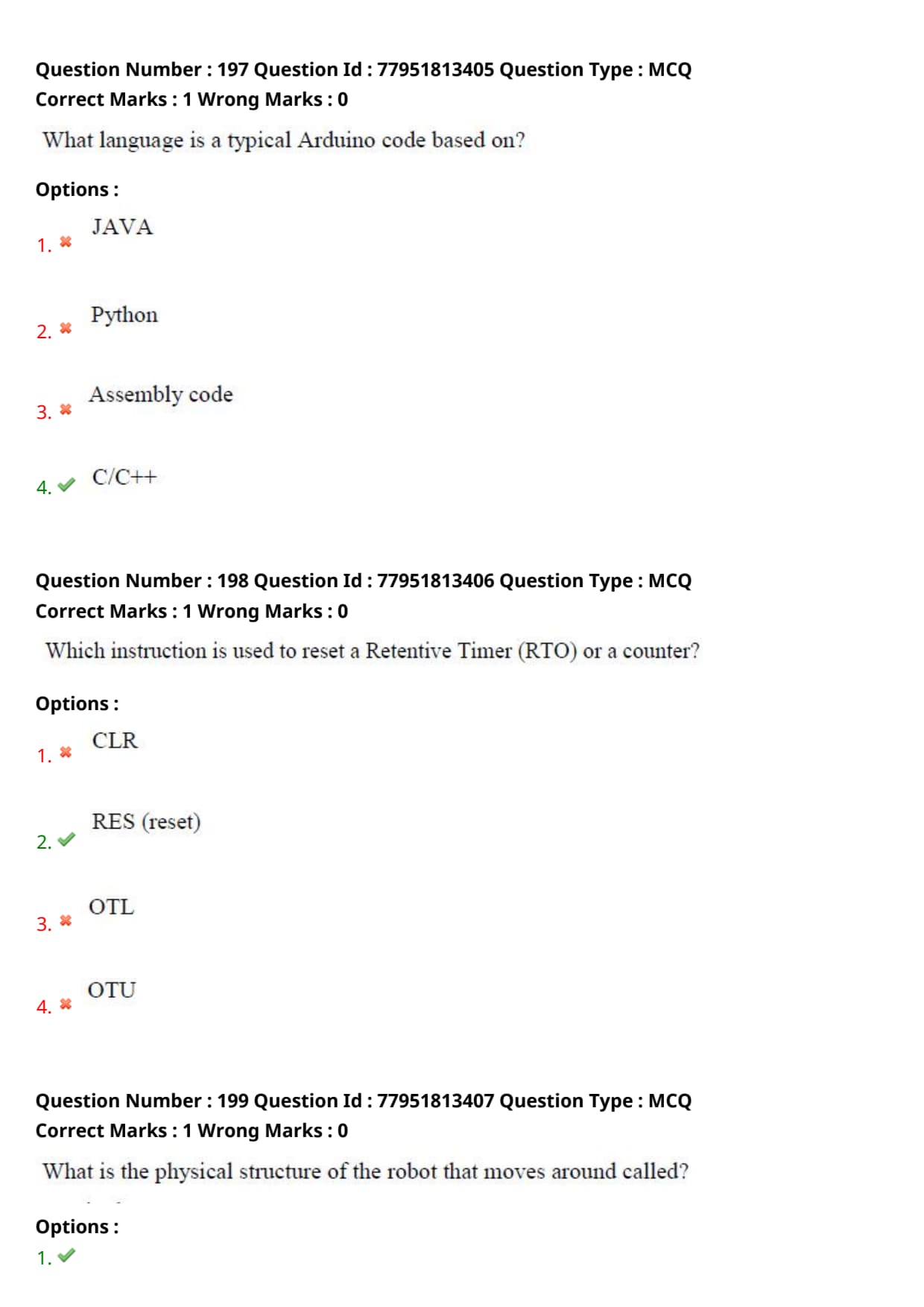 - Each correct answer answer carries 1 mark and there is no negative marking for incorrect answer.