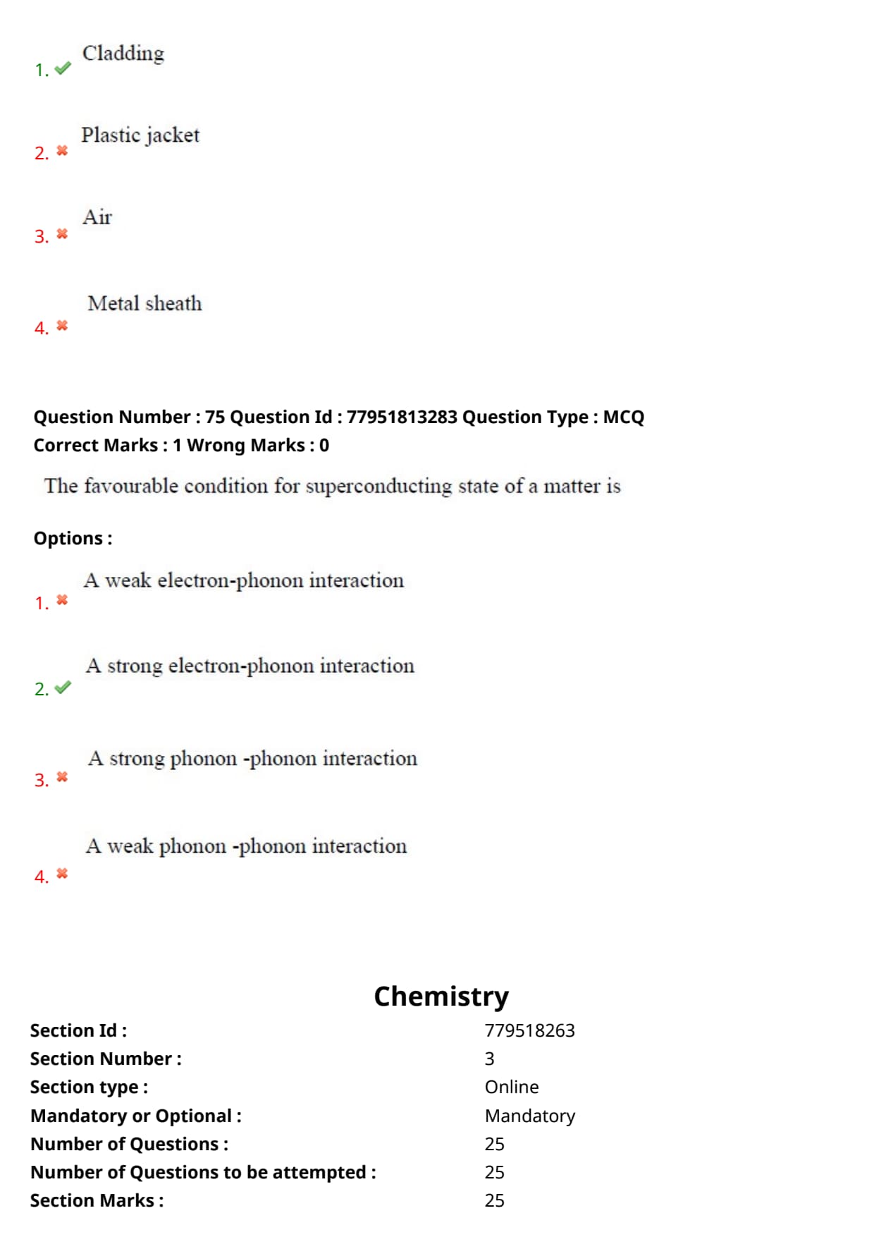 | Chemistry | 25 | 25 |