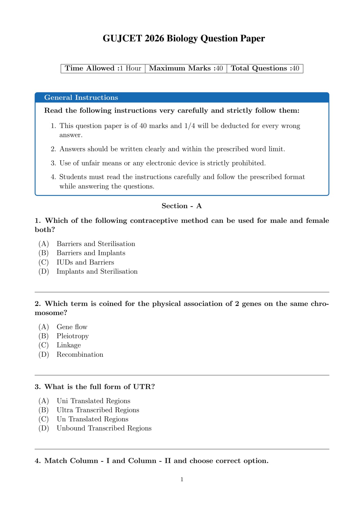 | GUJCET 2026 Biology Question Paper | Download PDF | Check Solution |