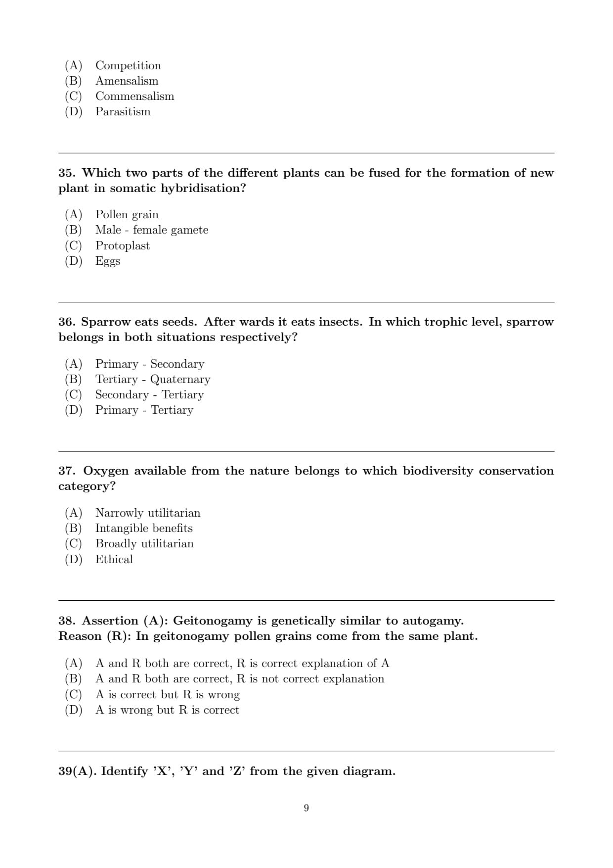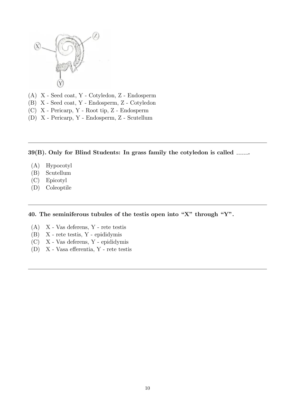 (A) X - Seed coat, Y - Cotyledon, Z - Endosperm