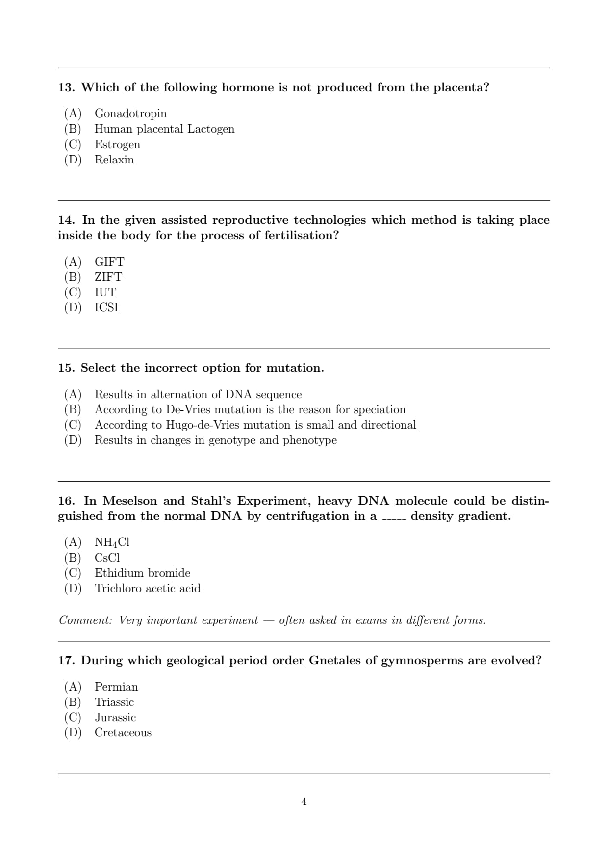 Final Answer: (A) Quick Tip: Barrier and sterilisation methods are the only contraceptive methods applicable to both males and females.