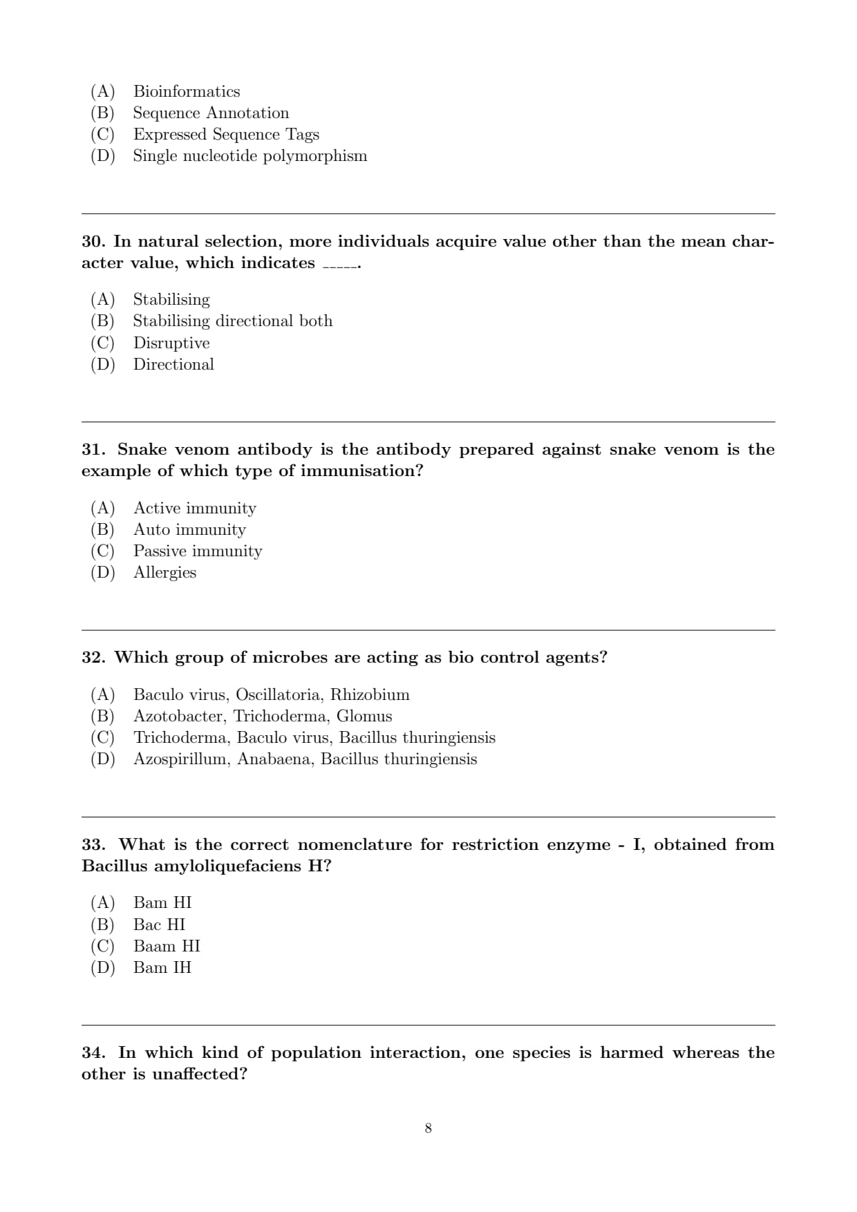 Final Answer: (A) Quick Tip: Naming = Genus + species + strain + number → BamHI.