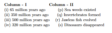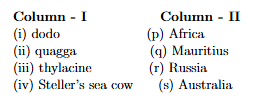 Match Column - I and Column - II and choose correct option.