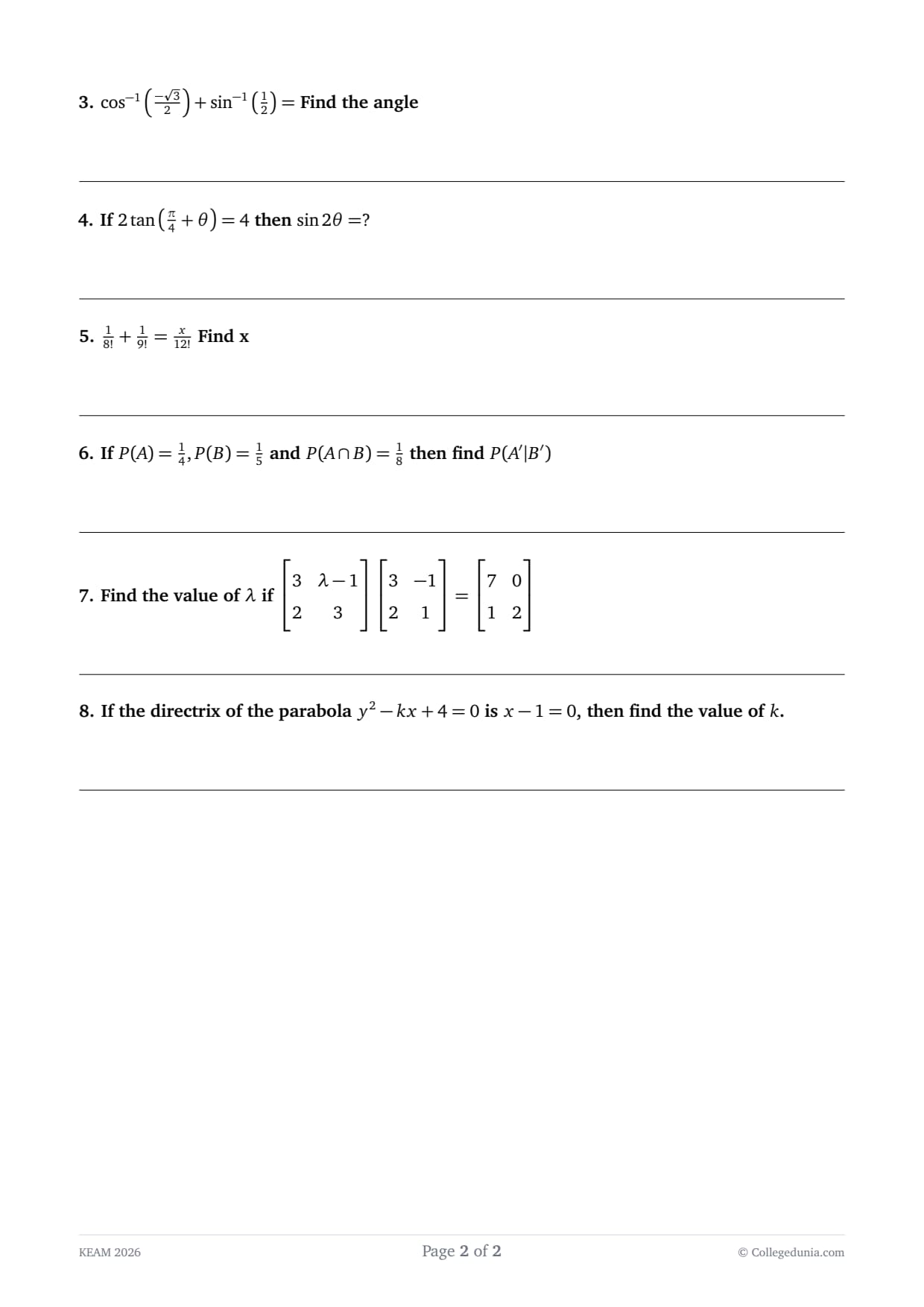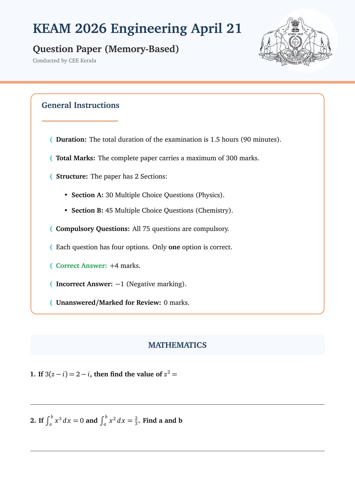 | KEAM 2026 Engineering Question Paper April 21 | Download PDF | Check Solution |