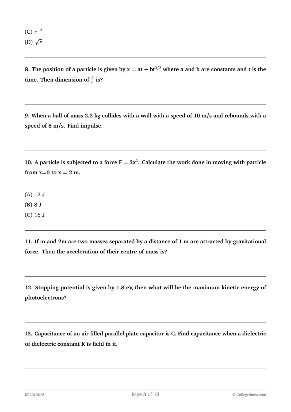 A particle is subjected to a force F = 3x\(^2\). Calculate the work done in moving with particle from x=0 to x = 2 m.