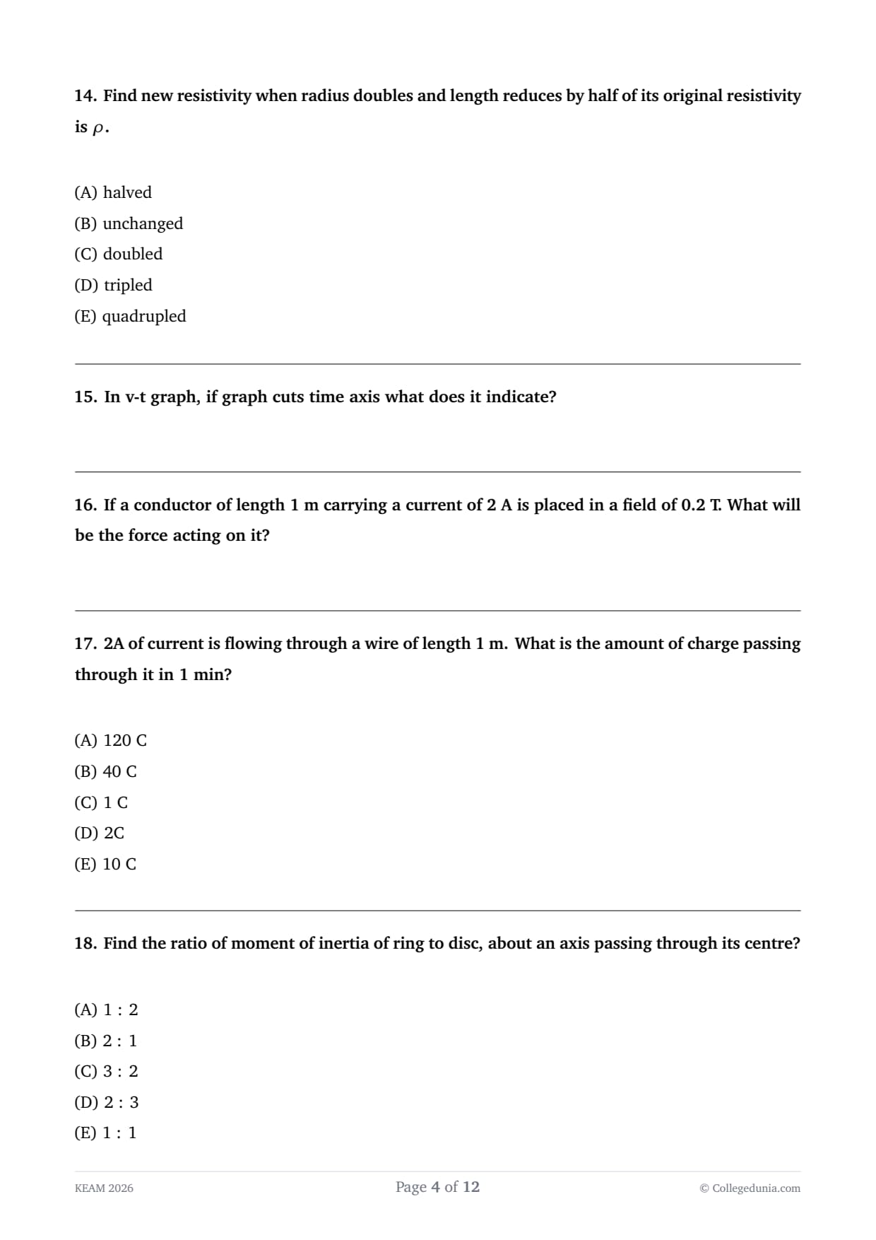 - 4 marks are given for every correct answer and 1 mark is deducted for every incorrect answer