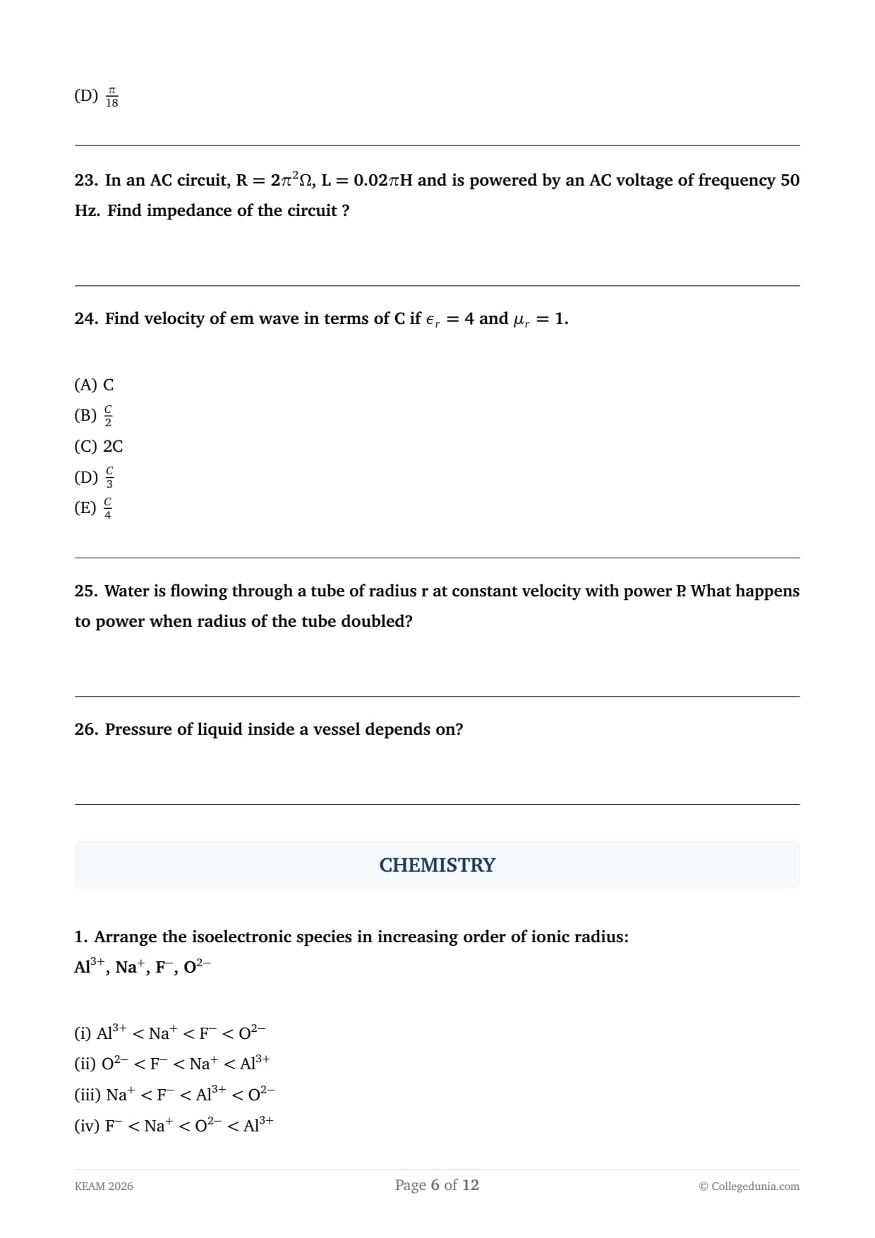 | KEAM 2026 Pharmacy Question Paper April 20 | Download PDF | Check Solution |