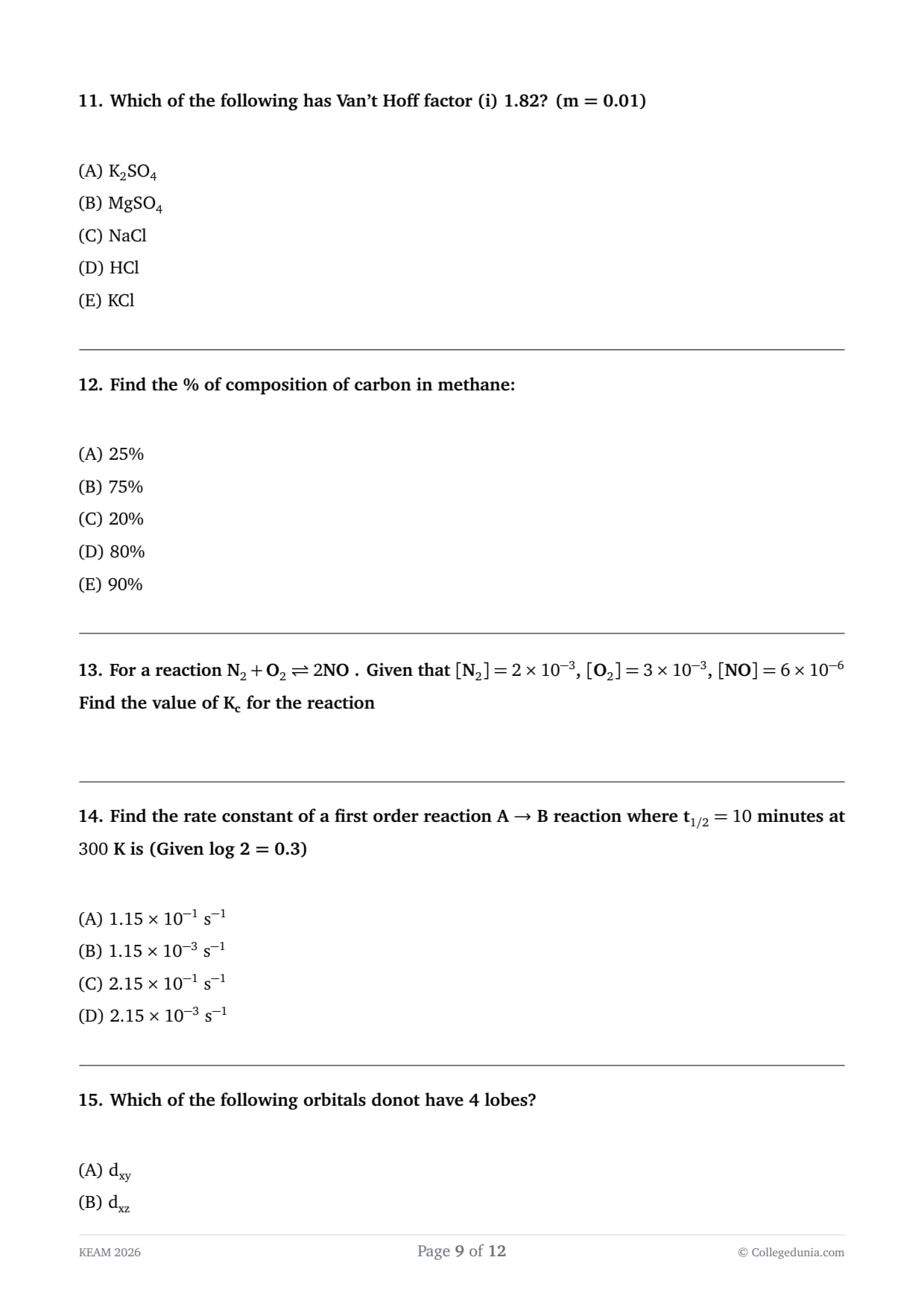 | Subjects | Physics- 30 questions Chemistry- 45 questions |