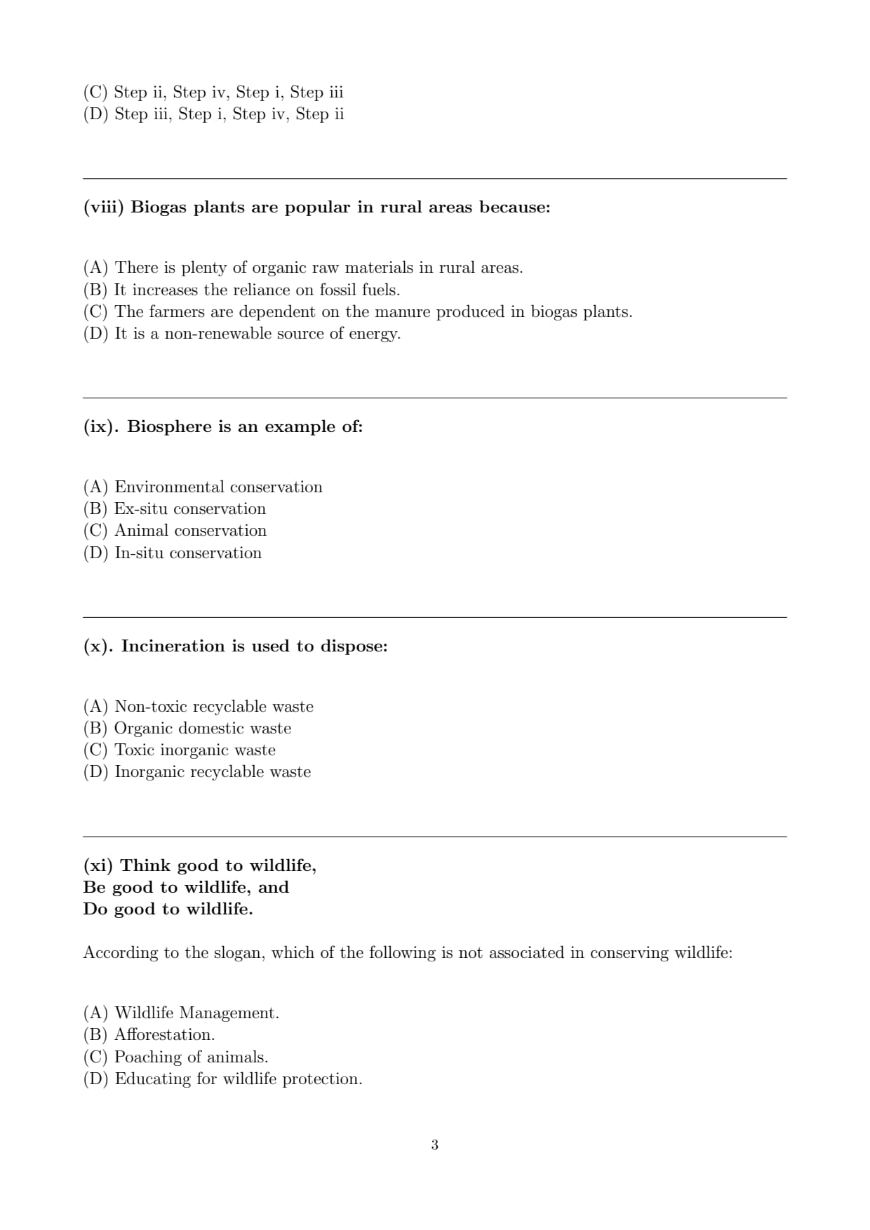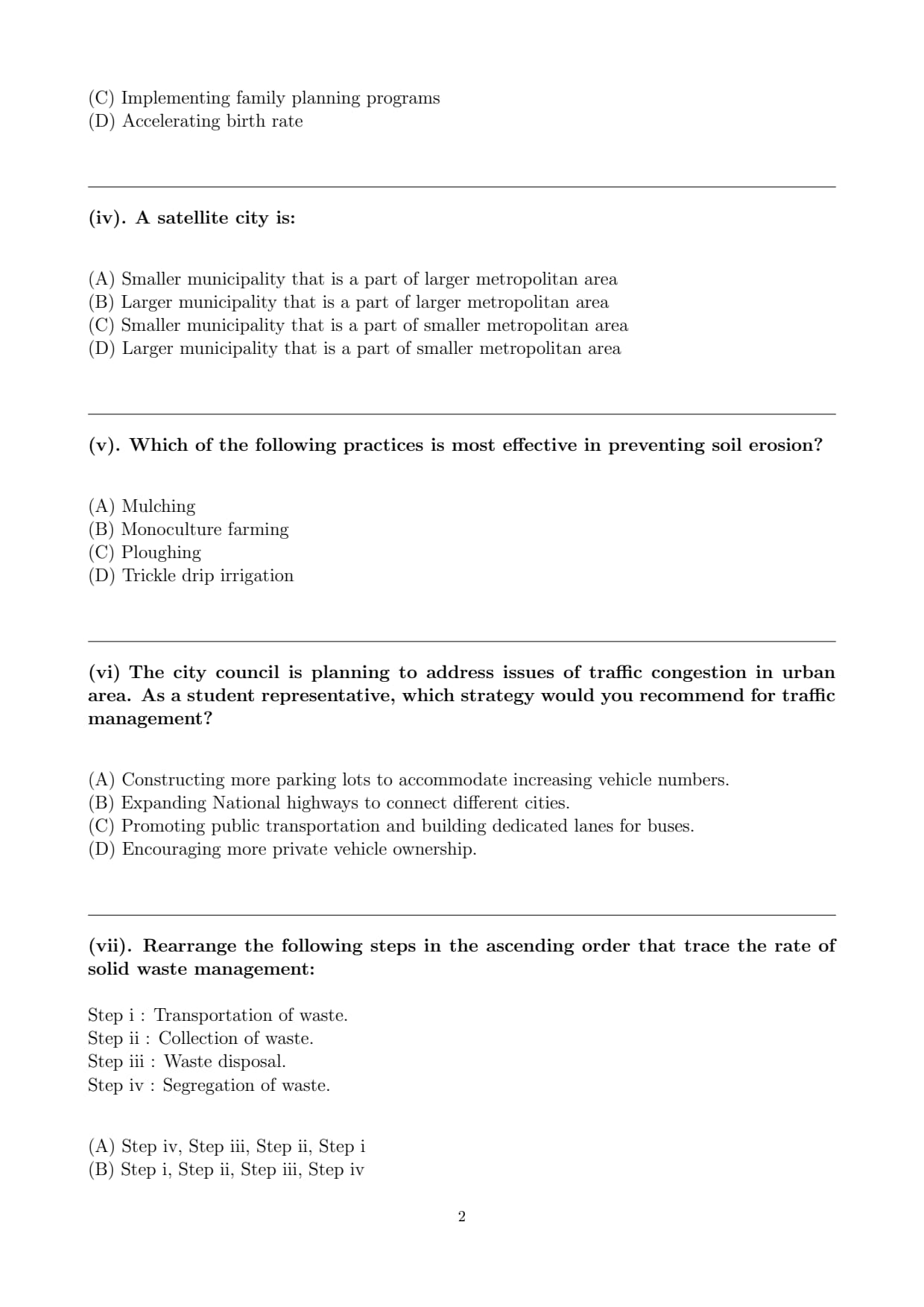 Final Answer: Step ii, Step iv, Step i, Step iii. Quick Tip: Proper solid waste management involves several steps starting from waste collection, followed by segregation, transportation, and finally, disposal. Each step is crucial for effective waste management.