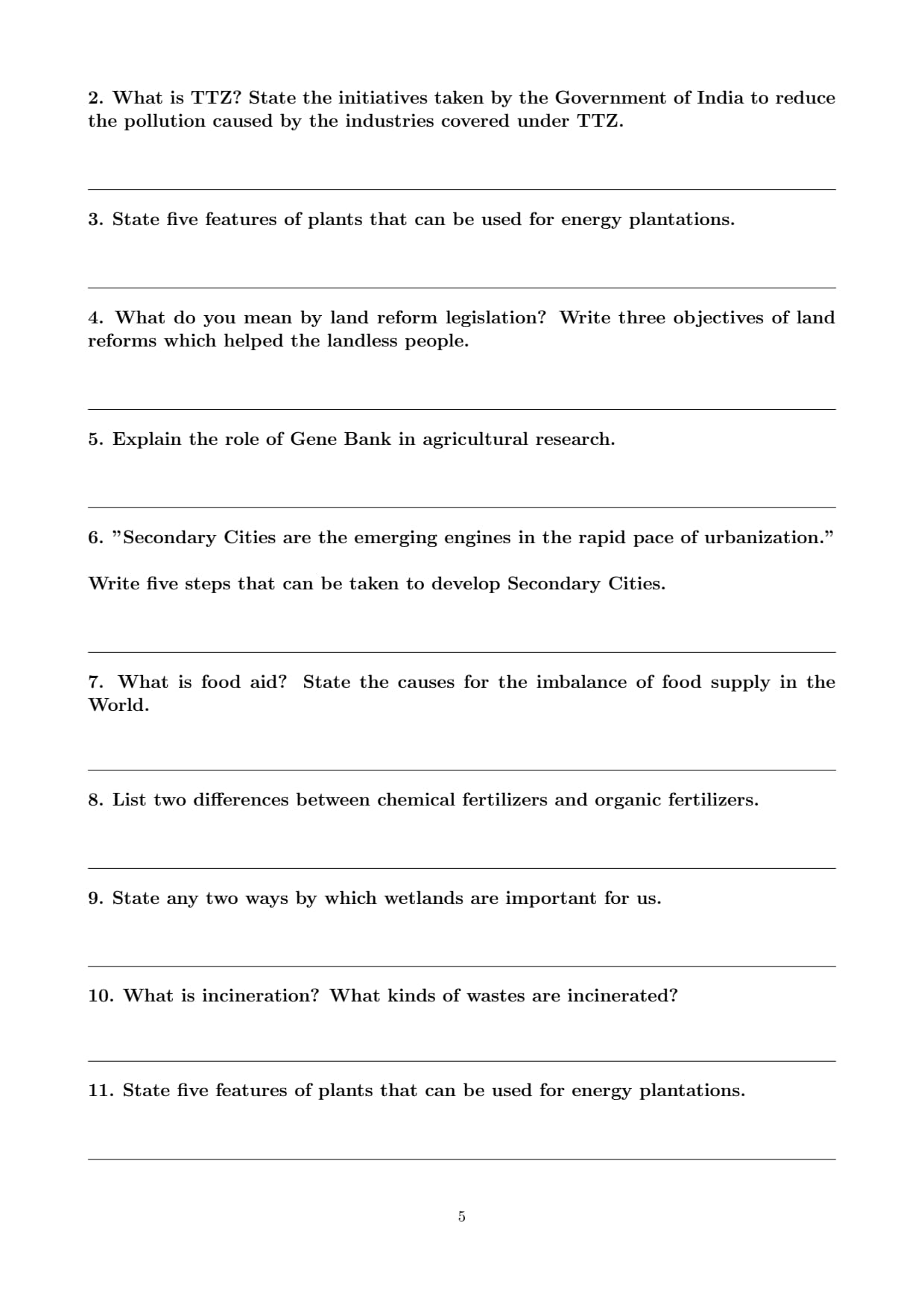 4. Soil Erosion: Trees prevent soil erosion by stabilizing the soil with their roots. Without trees, soil becomes loose and is prone to erosion, affecting agriculture and water quality. Quick Tip: Deforestation leads to environmental imbalances, contributing to climate change, loss of biodiversity, and disruption of ecosystems.