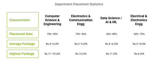 | Computer Science & Engineering | 70%–90% | INR 4–6 LPA | INR 11–13 LPA | Infosys, Amazon, Google, Capgemini, Turing Minds |