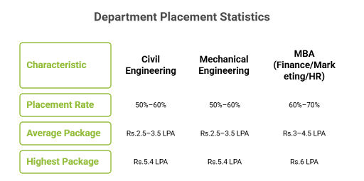 | Department | Placement Rate | Average Package | Highest Package | Top Recruiters |