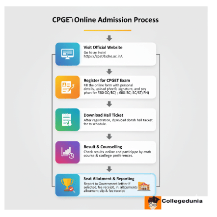 | PG | Graduation in relevant stream with at least 40–50% marks, as per CPGET eligibility | Register and appear for TS CPGET, pay exam fees, attend centralized counselling → Seat allotment → Report to college with allotment letter and documents → Document verification |