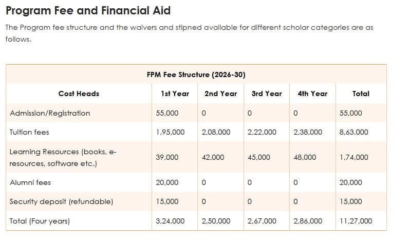 Earlier, Fellowship fees at IMI Delhi was ₹ 6.6 Lakhs (in 2025) for the entire course duration. This shows a fee decrease of ₹ 51,800 over the year.