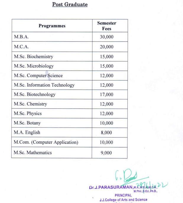 JJ College of Arts & Science (Autonomous) Pudukkottai M.Com Computer Applications is offered as 2 Years Full Time program. The minimum eligibility criteria for M.Com is Graduation. The total fees for JJ College of Arts & Science (Autonomous) Pudukkottai M.Com Computer Applications in 2025 is ₹ 40,000 for the complete course duration, which includes total tuition fees of ₹ 40,000.