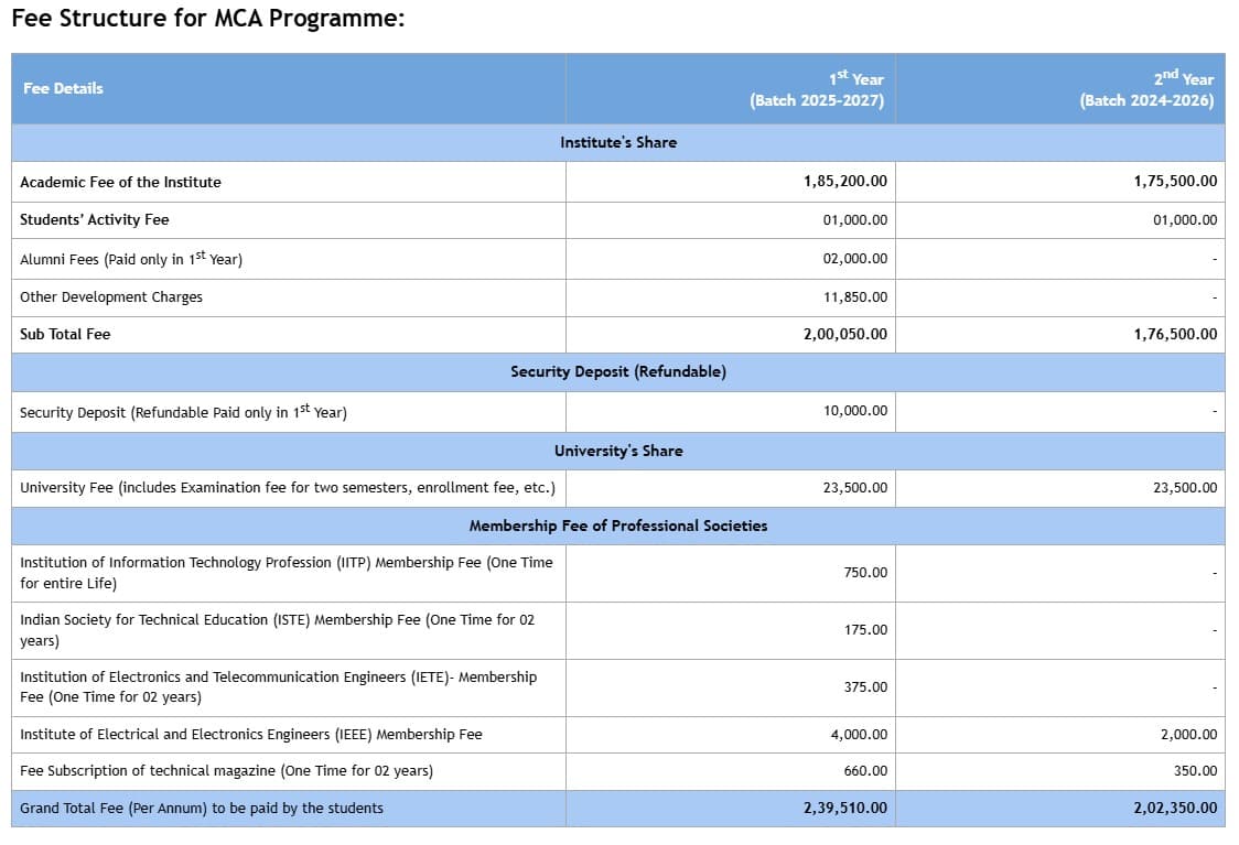 Earlier, MCA fees at Bharati Vidyapeeth's Institute of Computer Applications and Management New Delhi was ₹ 4.85 Lakhs (in 2021) for the entire course duration. This shows a fee decrease of ₹ 23,940 over the year.