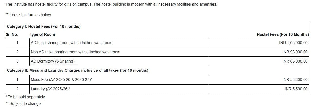 Beyond placements, many pursue higher studies or find jobs in top law firms and corporates, earning an average of 5-6 Lakhs annually, with a maximum of 20 Lakhs. Scholarships are available based on merit and merit-cum-means, including a 100% waiver for top CLAT scorers and significant concessions for SC/ST and high-merit students. The annual tuition fee for integrated law programs ranges from Rs. 3,18,000 to Rs. 3,73,200, not including hostel fees, and can be paid in two installments via various methods.