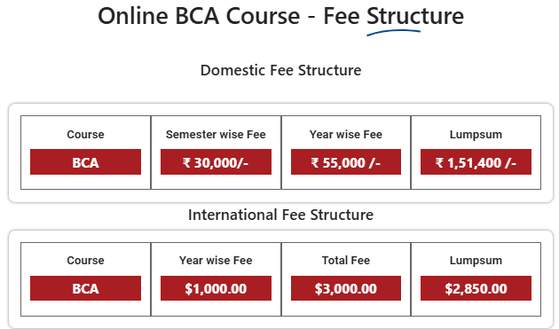 Earlier, BCA fees at Manav Rachna Centre for Distance and Online Education Faridabad was ₹ 1.65 Lakhs (in 2025) for the entire course duration. This shows that the fee has remained unchanged since 2025.