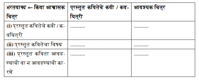 खालील मुद्दयांच्या आधारे खालीलपैकी कोणत्याही एका कवितेसंबंधी खालील कृती सोडवा :
