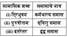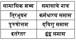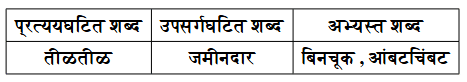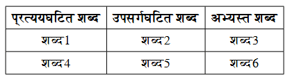 खाली दिलेल्या शब्दांचे वर्गीकरण करून तक्ता पूर्ण करा