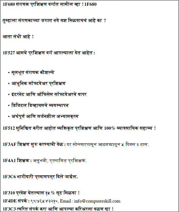 संगणक प्रशिक्षण वर्गाची आकर्षक जाहिरात तयार करा.