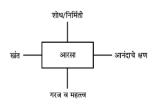 आरसा – माझ्या आयुष्यातील एक महत्त्वाचा घटक म्हणजे मी जी व्यक्ती आहे, त्याचे प्रतिबिंब माझ्या आरशात दिसते. आरशाचा माझ्या जीवनात खूप मोठा प्रभाव आहे. तो मला माझ्या बाह्य रूपाचे दर्शन देतो, पण त्याचप्रमाणे मला माझ्या आतल्या व्यक्तिमत्वाची आणि विचारांचीही ओळख करून देतो.