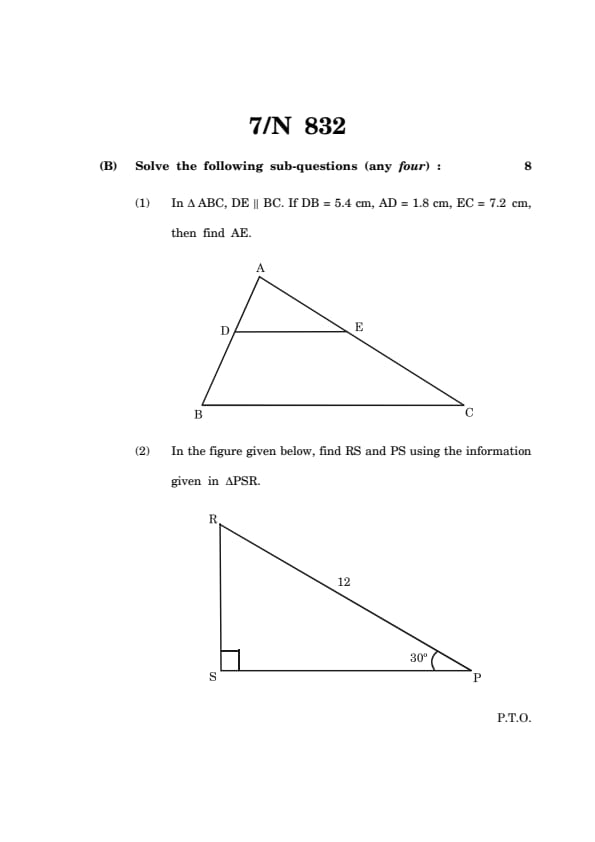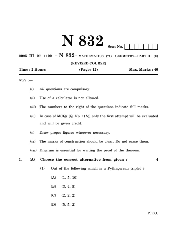 Maharashtra Board Class 10 Mathematics Geometry Part-2 Question Paper 2025 PDF (Code N 832) is available for download here. The Mathematics exam was conducted on March 7, 2025 from 11:00 AM to 2:00 PM. The Maharashtra State Board of Secondary and Higher Secondary Education (MSBSHSE) conducted the Class10 examination for a total duration of 3 hours, and the question paper had a total of 80 marks.