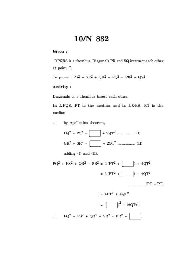 \(\therefore\) PQ\(^2\) + PS\(^2\) + QR\(^2\) + SR\(^2\) = PR\(^2\) + \framebox[1.5cm]{\phantom{X