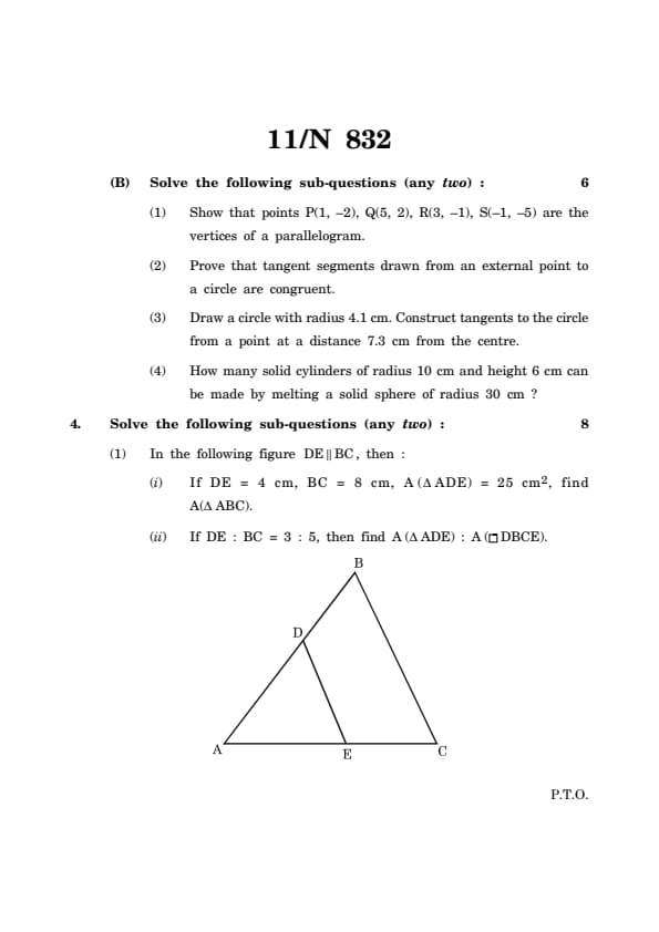 Maharashtra Board Class 10 Mathematics Geometry Part-2 Question Paper 2025 (Code N 832) with Solutions