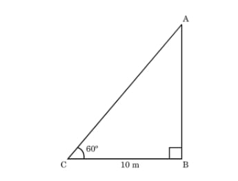 In the figure given above, AB = h = height of tree, BC = 10 m, distance of the observer from the tree.