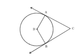 In the following figure, circle with centre D touches the sides of \(\angle\)ACB at A and B. If \(\angle\)ACB = 52\(^\circ\), find measure of \(\angle\)ADB.
