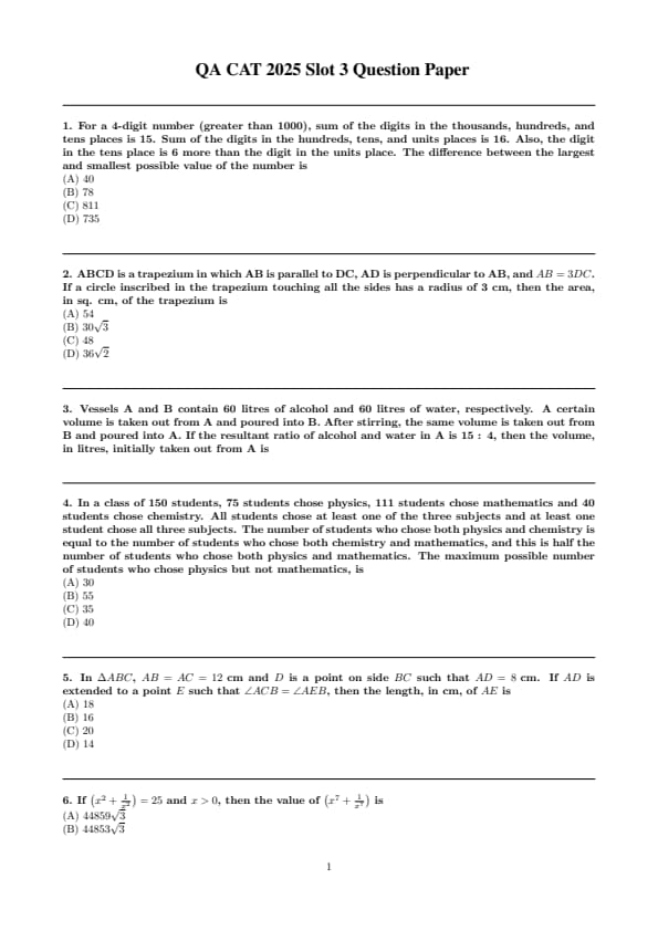 Also Check CAT 2025 Question Paper (All Slots)