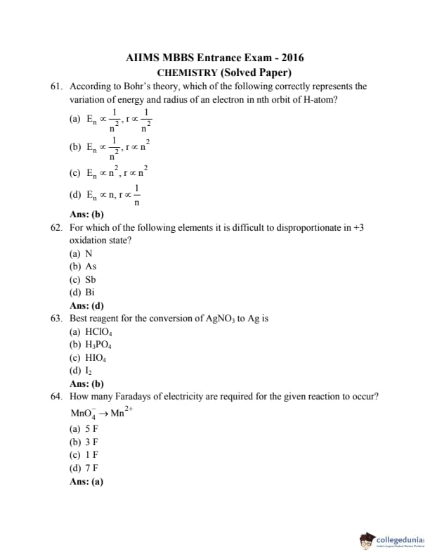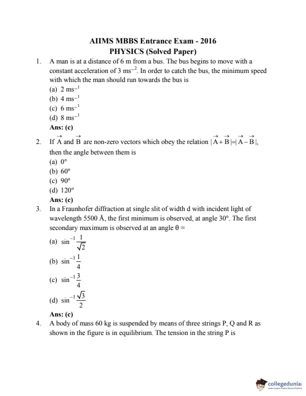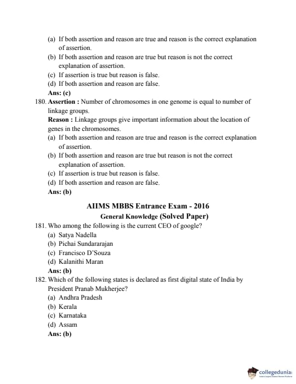 AIIMS MBBS 2016 Question Paper PDF AIIMS MBBS 2016 Answer Key PDF