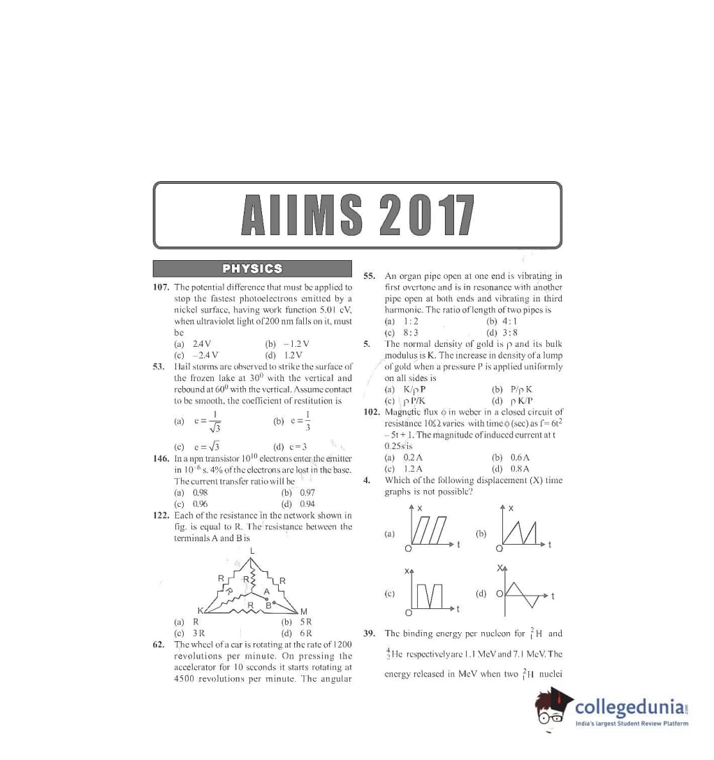 AIIMS MBBS 2017 Question Paper PDF AIIMS MBBS 2017 Answer Key PDF