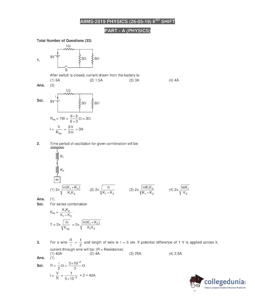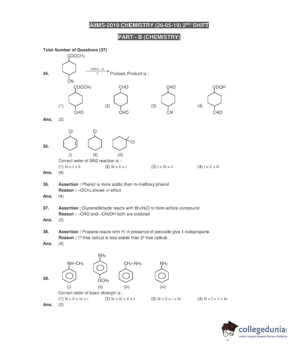 AIIMS MBBS 2019 Question Paper with Answer Key PDF (May 26 - Afternoon Session)