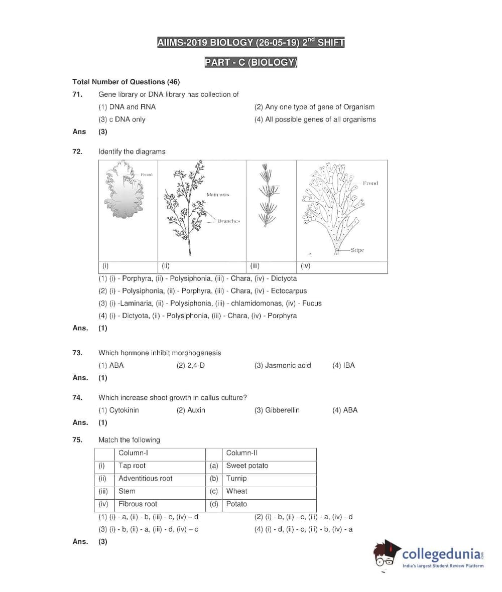 AIIMS MBBS 2019 Question Paper PDF AIIMS MBBS 2019 Answer Key PDF