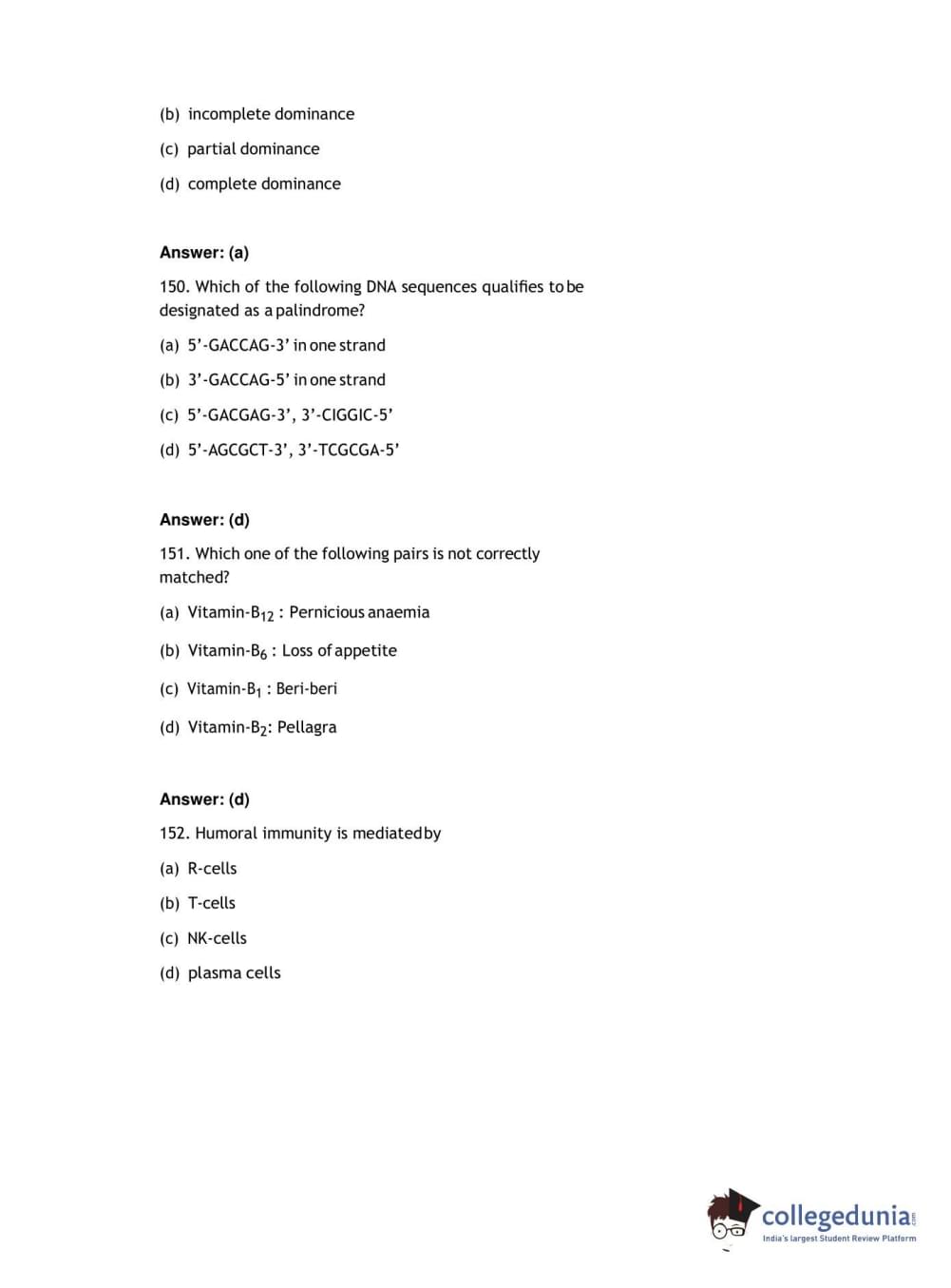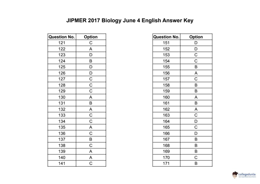JIPMER 2017 Biology Question paper with answer key pdf conducted on June 4, 2017 is available for download. The exam was successfully organized by Jawaharlal Institute of Postgraduate Medical Education and Research (JIPMER). The question paper comprised a total of 60.0 questions.