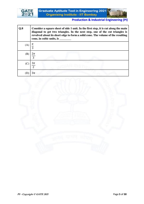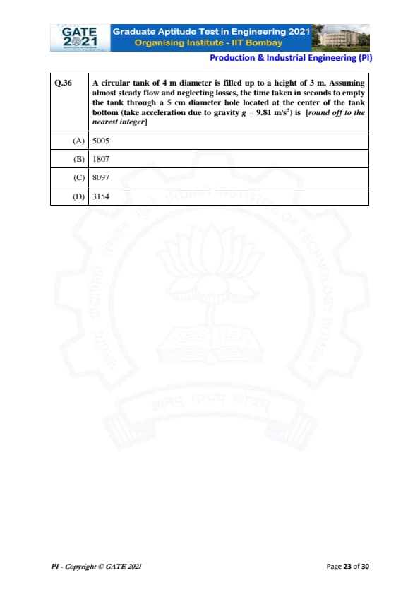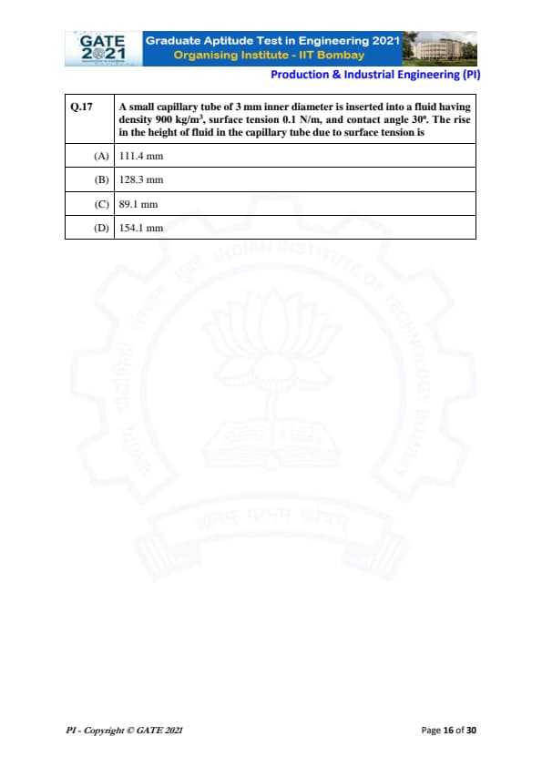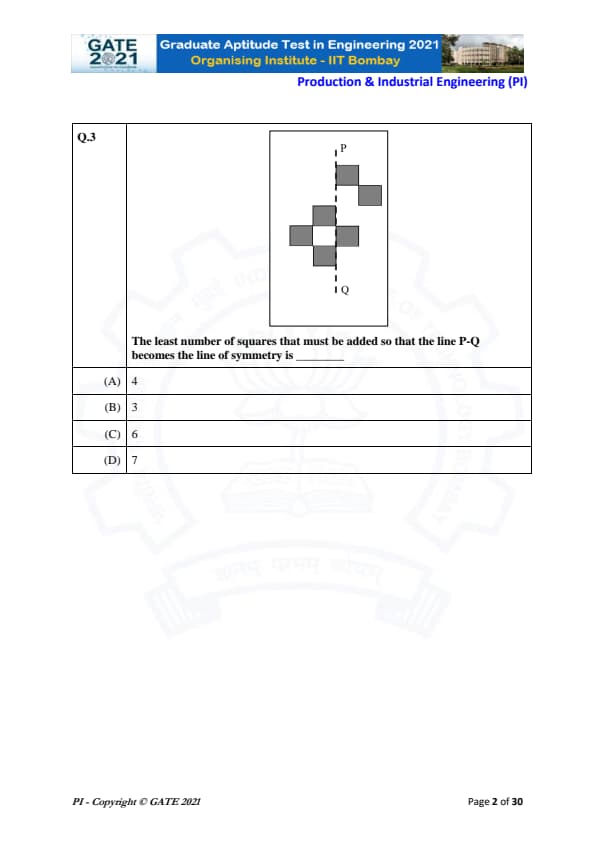 GATE 2021 Production and Industrial Engineering (PI) Question