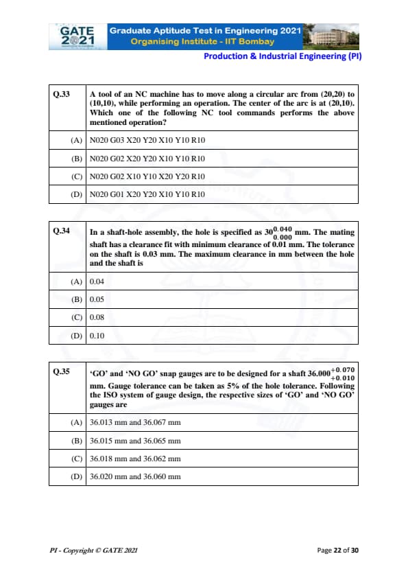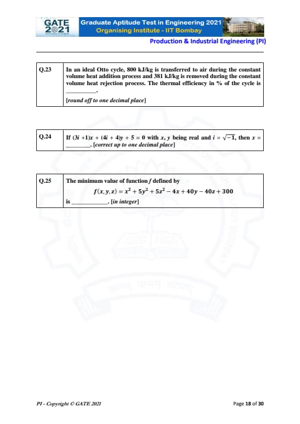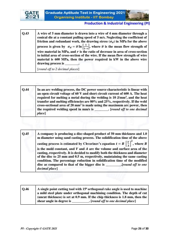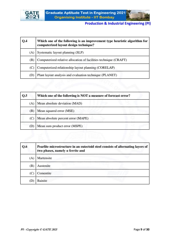 | GATE 2021 Production and Industrial Engineering (PI) Question Paper | Check Solutions |