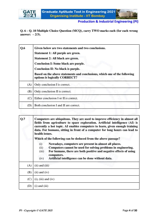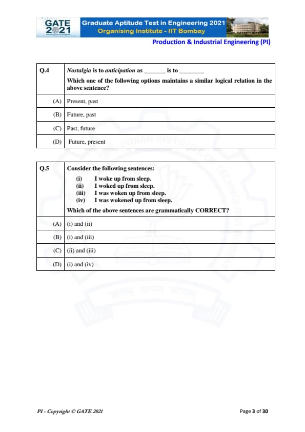 GATE 2021 PI Paper Analysis