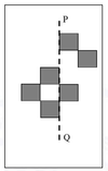 Symmetry in this case means that for each square on one side of the line P-Q, there must be a corresponding square on the opposite side. In this case, the figure is asymmetric along the line P-Q, which means that squares are missing on one side of the line.