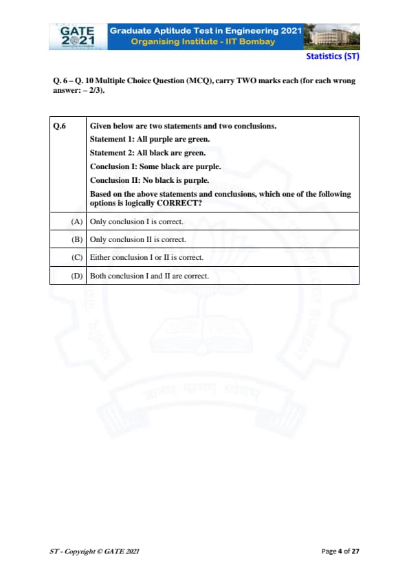GATE 2021 ST: Exam Pattern and Marking Scheme