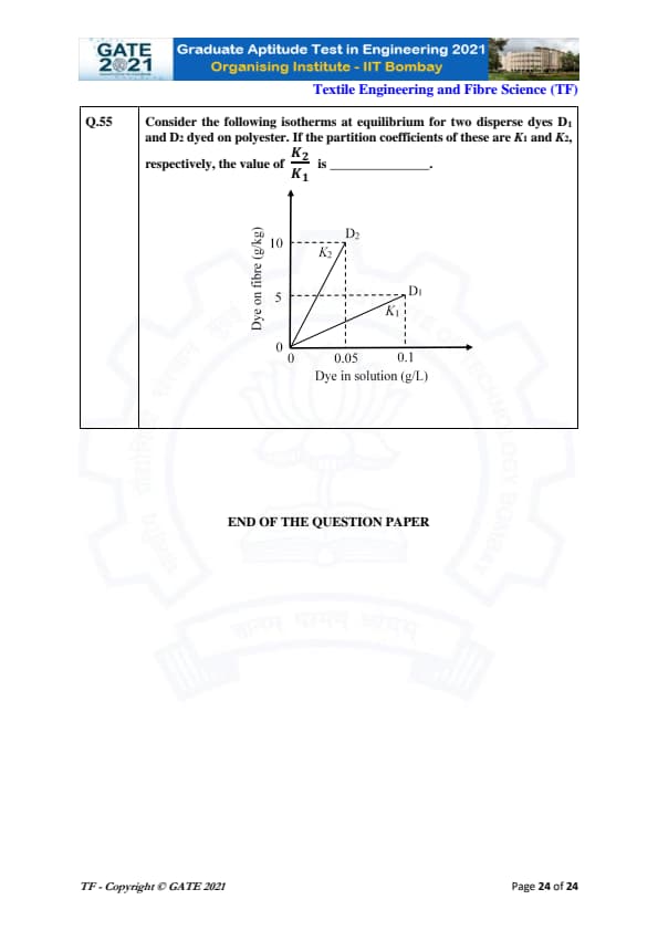 GATE 2021 Textile Engineering and Fiber Science (TF) Question Paper with Solutions