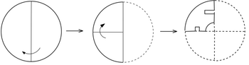 A circular sheet of paper is folded along the lines in the directions shown. The paper, after being punched in the final folded state as shown and unfolded in the reverse order of folding, will look like \hspace{2cm}.