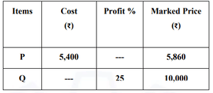 Details of prices of two items P and Q are presented in the above table. The ratio of cost of item P to cost of item Q is 3:4. Discount is calculated as the difference between the marked price and the selling price. The profit percentage is calculated as the ratio of the difference between selling price and cost, to the cost.